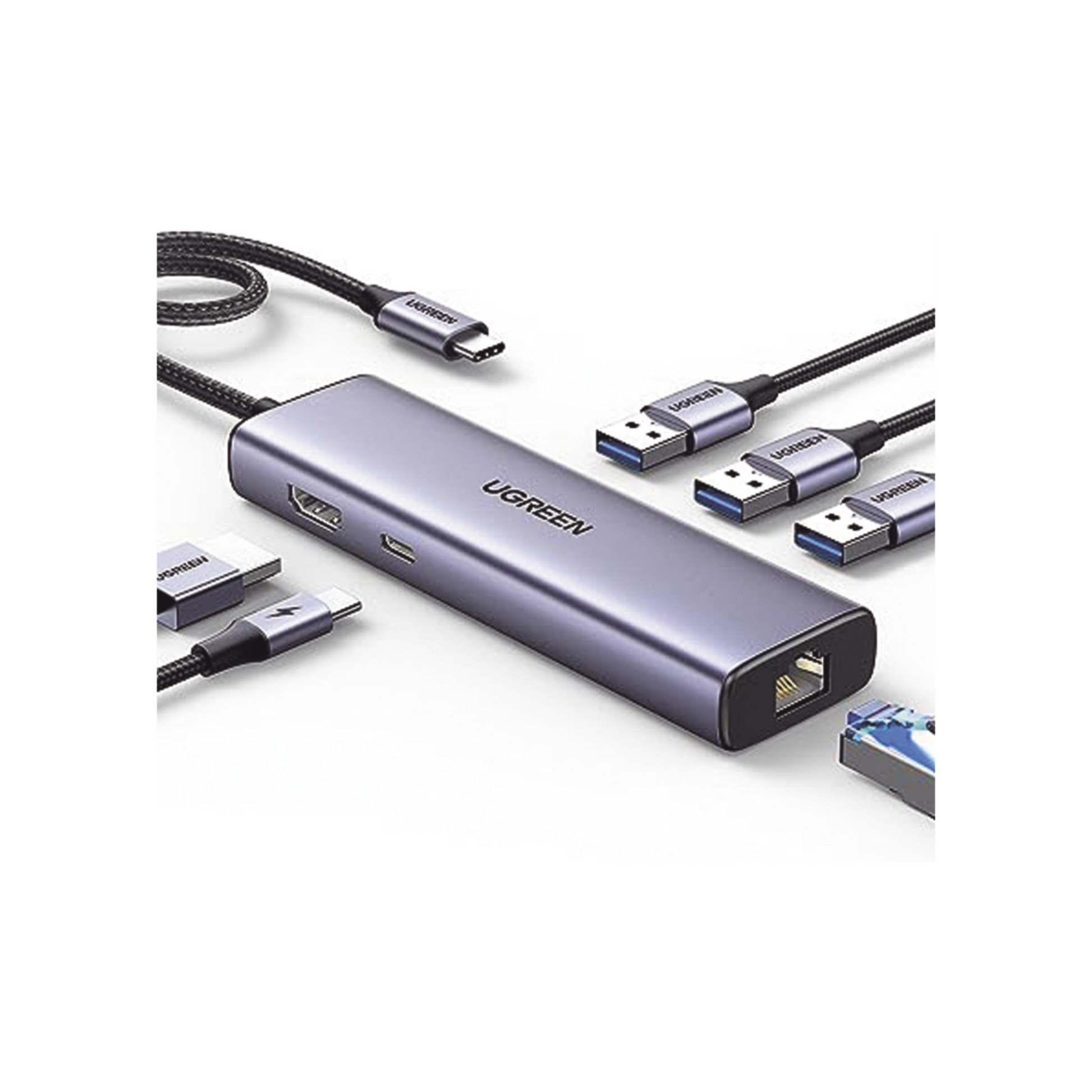HUB USB-C (Docking Revodok) 6 en 1 | 3 Puertos USB-A 3.0 (5 Gbps) | USB-C PD 100W | HDMI 4K@30Hz | Entrada 1 RJ45 (Gigabit Ethernet) | Chip de Última Generación | Potente Disipación de Calor | Caja de Aluminio.