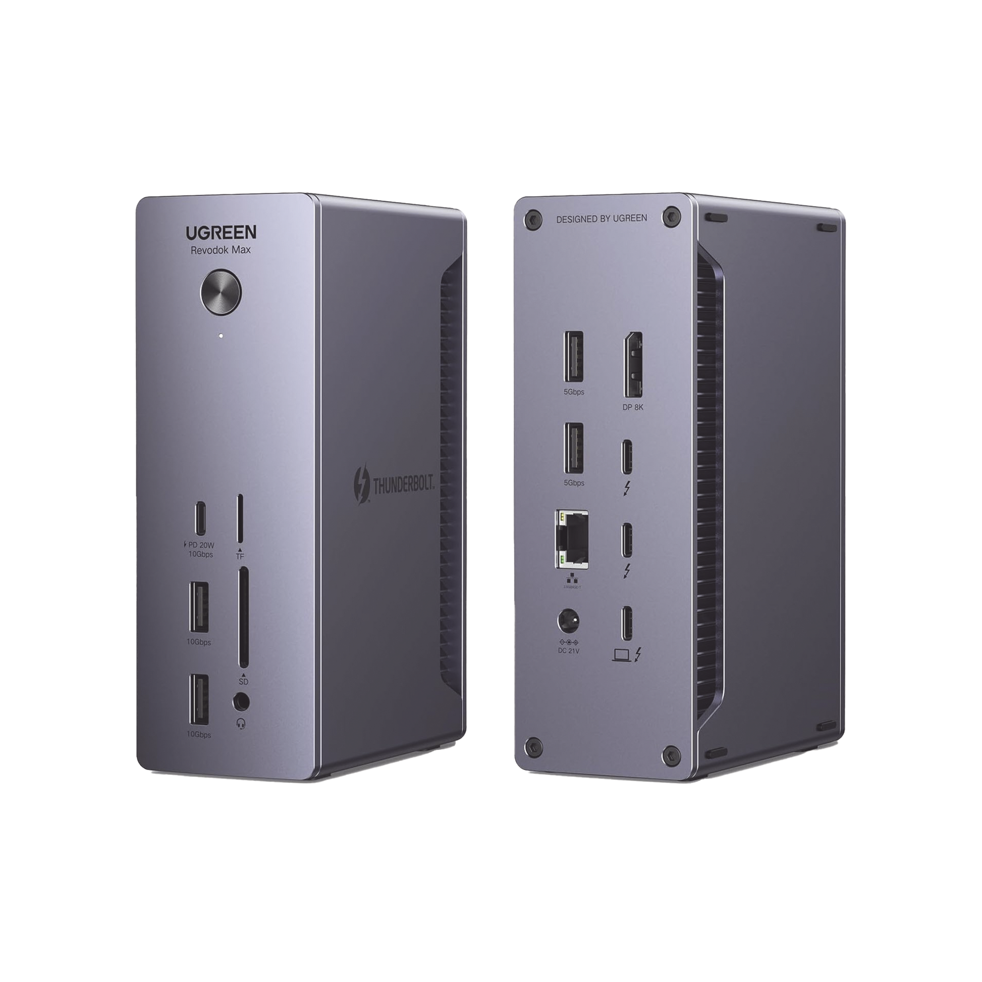 HUB USB-C (Docking Revodok Max 213) 13 en 1 | 2 Thunderbolt 4 (40Gbps,8K@30Hz) | 2 USB-A 3.2 (10Gbps) | 1 USB-C 3.2 (10Gbps, 20W) | 2 USB-A 3.0 (5Gbps) | Display Port 1.4 8K@30Hz | RJ45 (2.5 Gigabit) | SD + Micro SD (TF) 4.0 | Jack Audio 3.5mm.
