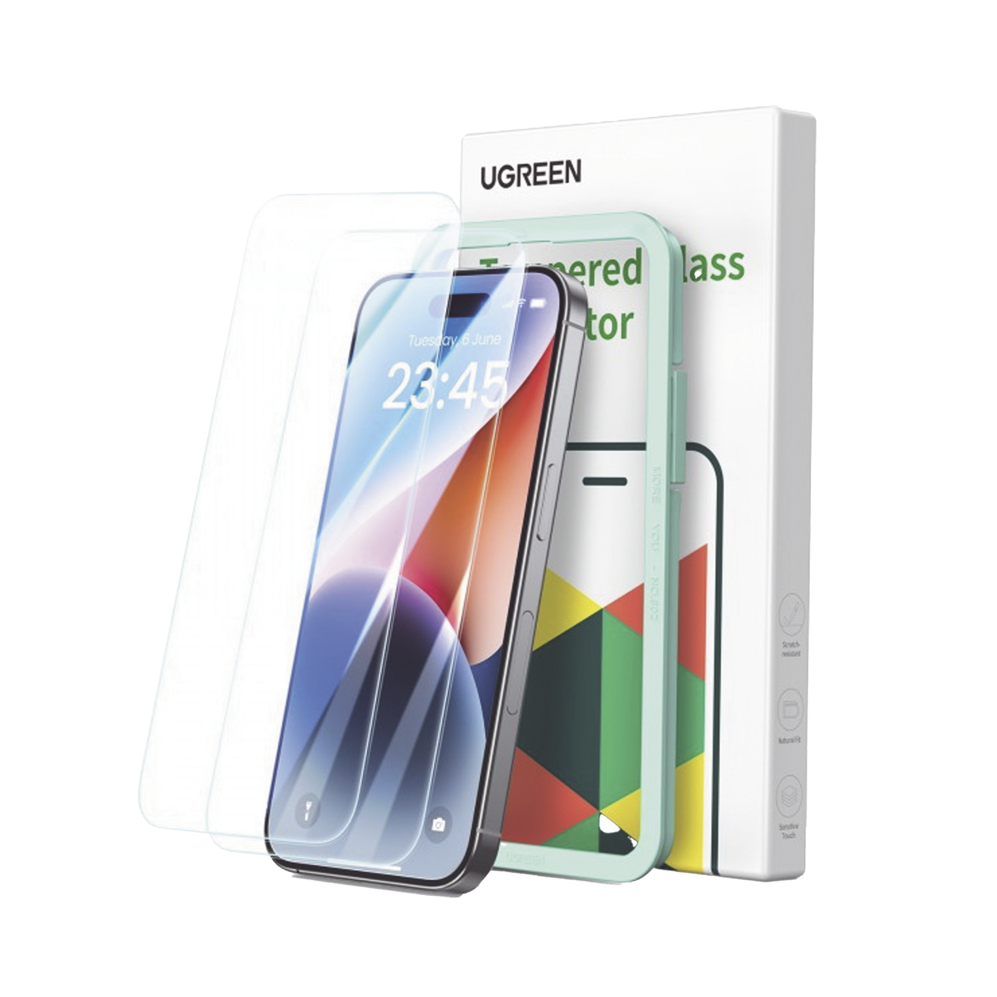 Protector de pantalla UGREEN HD con marco de instalación para iPhone 15 Plus/16 Plus (paquete de 2)