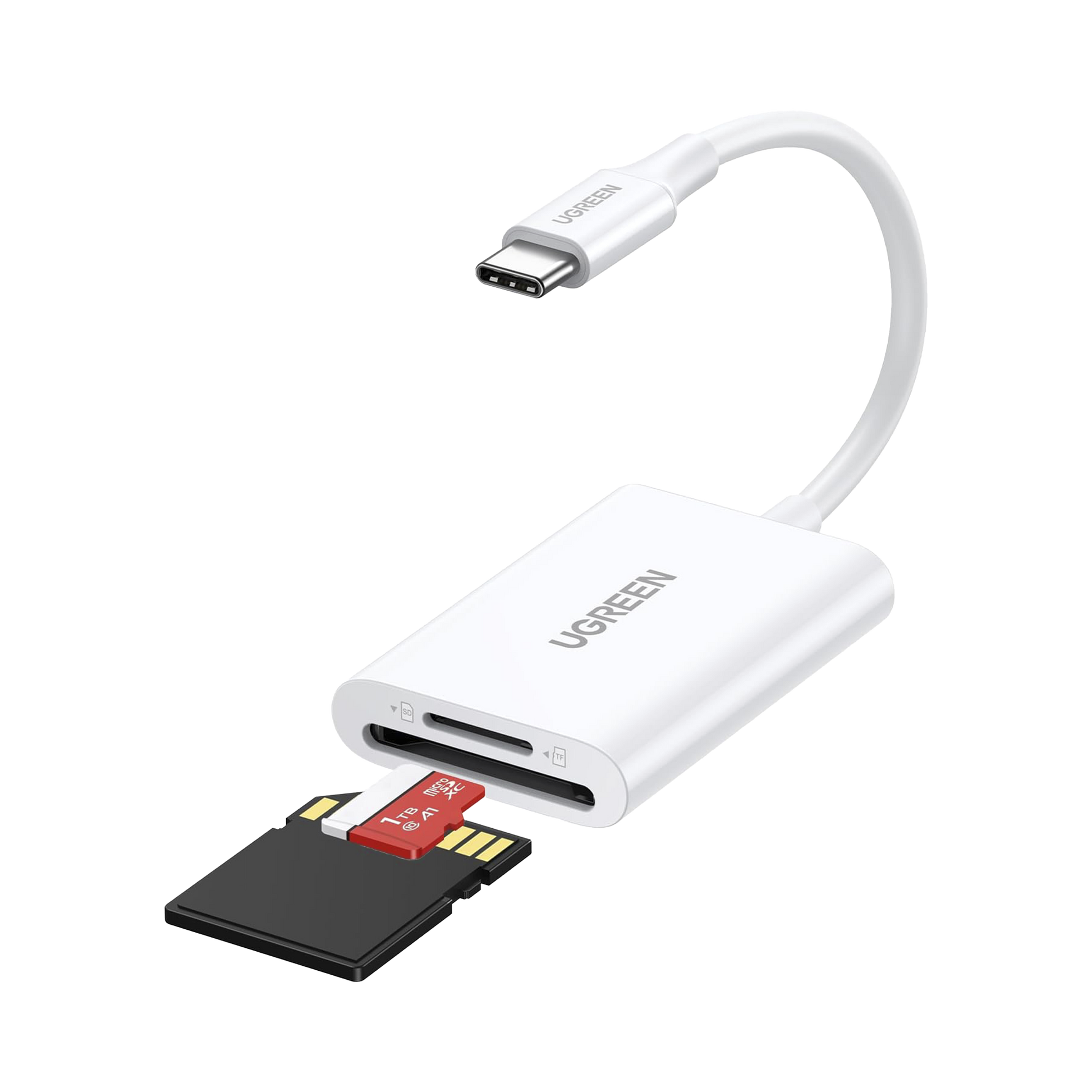 Lector de Tarjetas USB-C 3.1 | Soporta Micro-SD (TF) /SD | 5Gbps | 170 MB/s | OTG | Soporta hasta 2TB | Admite intercambio en Caliente | 2 tarjetas simultaneas | Soporta Windows/Mac OS/Linux | Color Blanco