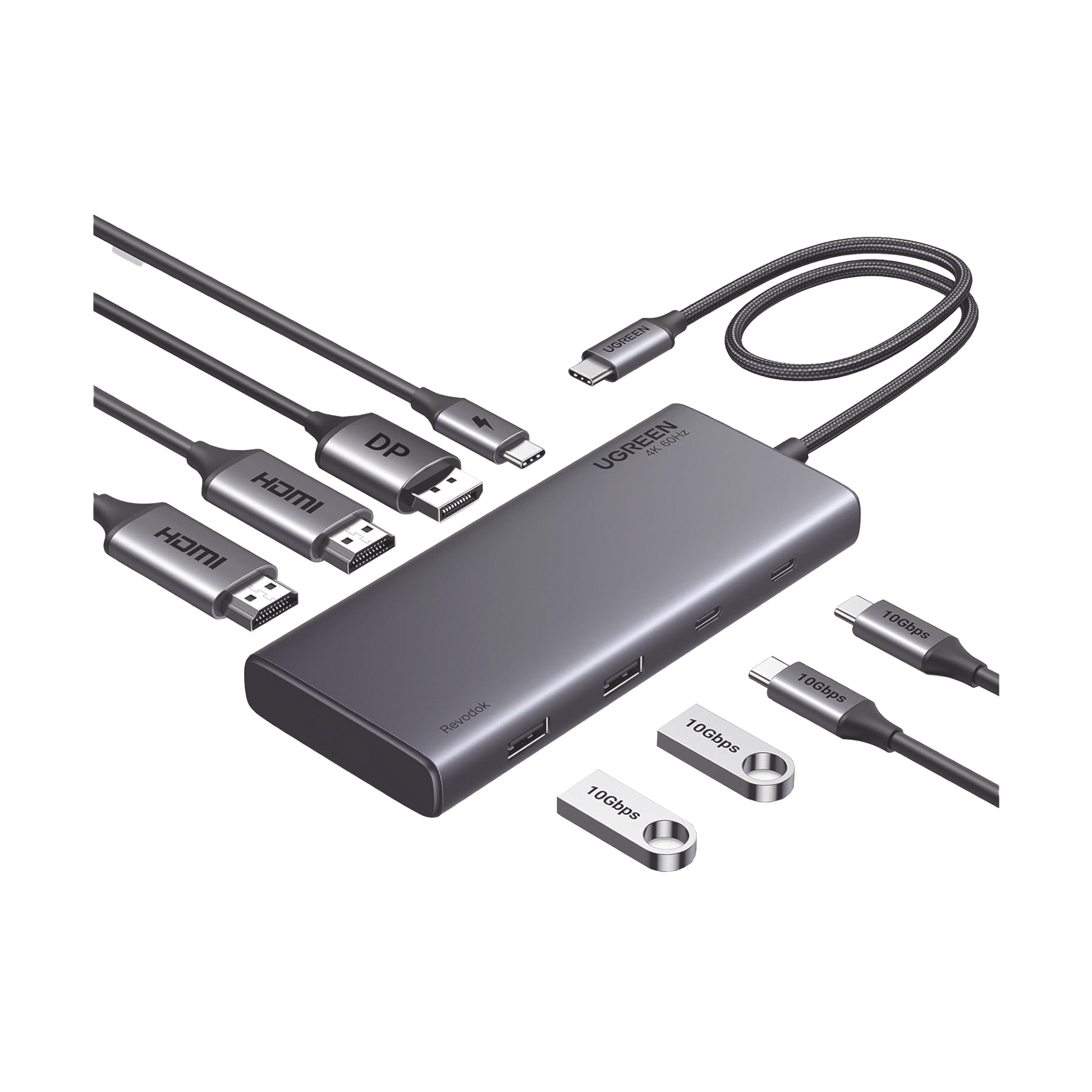 HUB USB-C (Docking Revodok 308) 8 en 1 | 2 Puertos HDMI 4K@60Hz | 1 Puerto DisplayPort 4K@60Hz 2 USB-A 10Gbps) | 2 USB-C (10Gbps) | USB-C PD Carga 100W | Chip de Ultima Generacion | Carcasa de Aluminio.