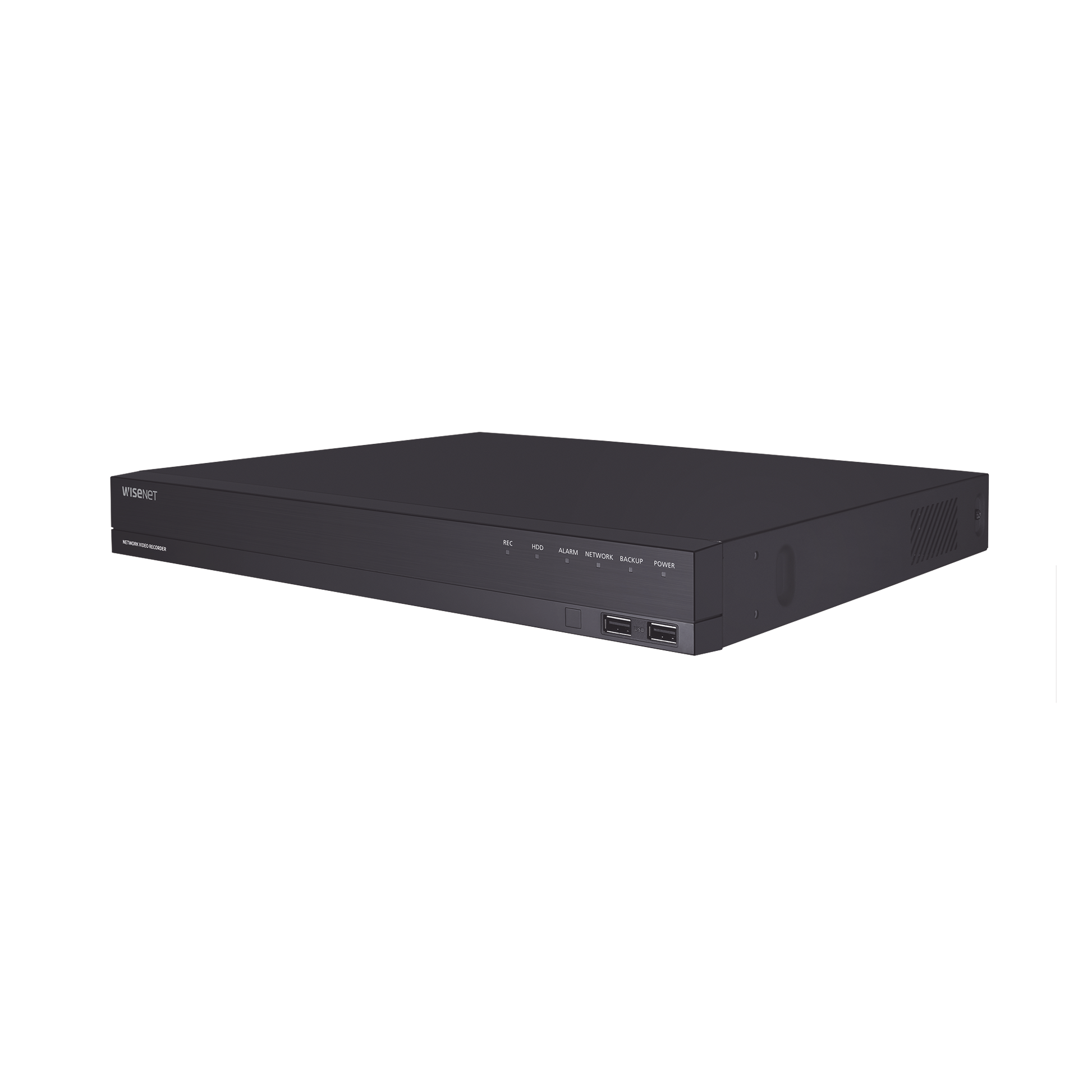NVR 16 canales grabacion hasta 8MP / H.265 / P2P Wisenet / 16 puertos PoE Plug and Play / 80 Mbps para grabacion.