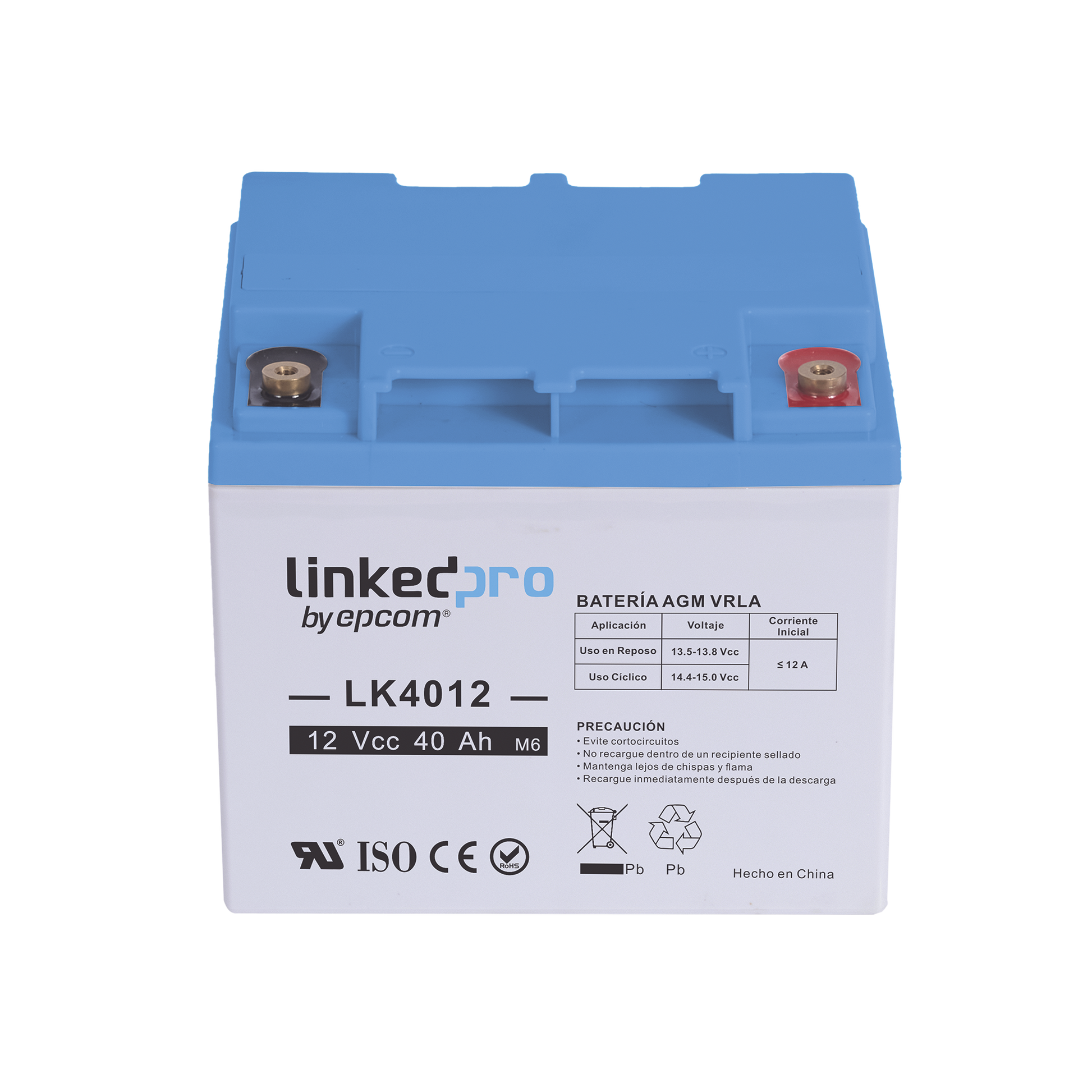 Batería 12 Vcc / 40 Ah / UL / Tecnología AGM-VRLA / Para uso en equipo electrónico, Alarmas de Intrusión / Incendio/ Control de acceso / Video Vigilancia / T2