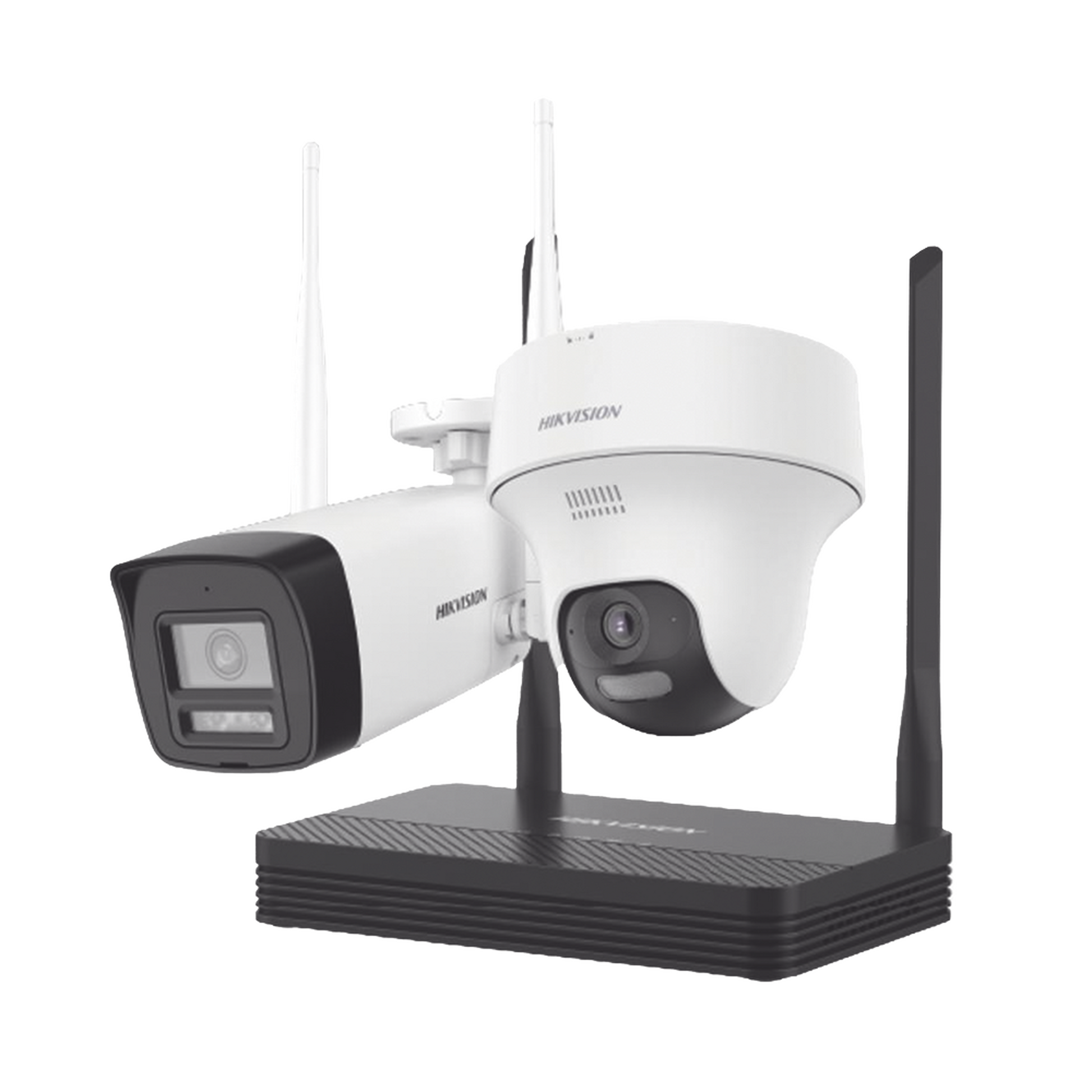 Kit IP Inalámbrico 2 Megapíxel / NVS 4 Canales / 1 Cámara Bala Exterior + 1 Cámara Turret Interior con Lente 2.8 mm y Dual Light / Audio Bidireccional (Micrófono y Bocina) / Soporta Micro SD de 512 GB